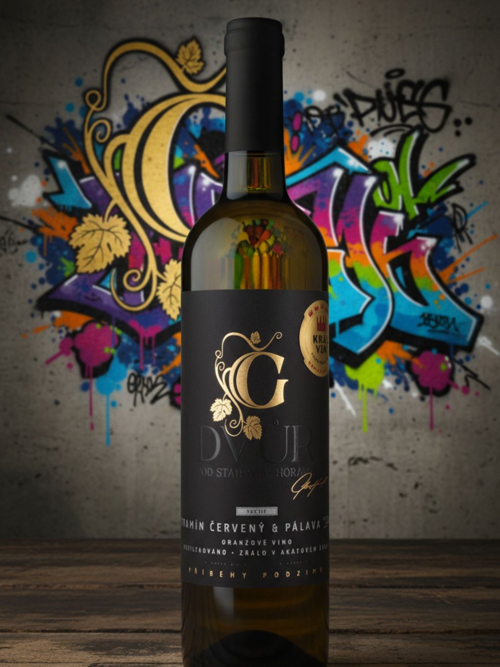 Oranžové víno z Pálavy a Tramínu červeného (50/50). Čtyři měsíce na slupkách a zrání v akátových sudech. Lahvováno bez filtrace tak, jak se hrozen sám přetvořil ve víno.